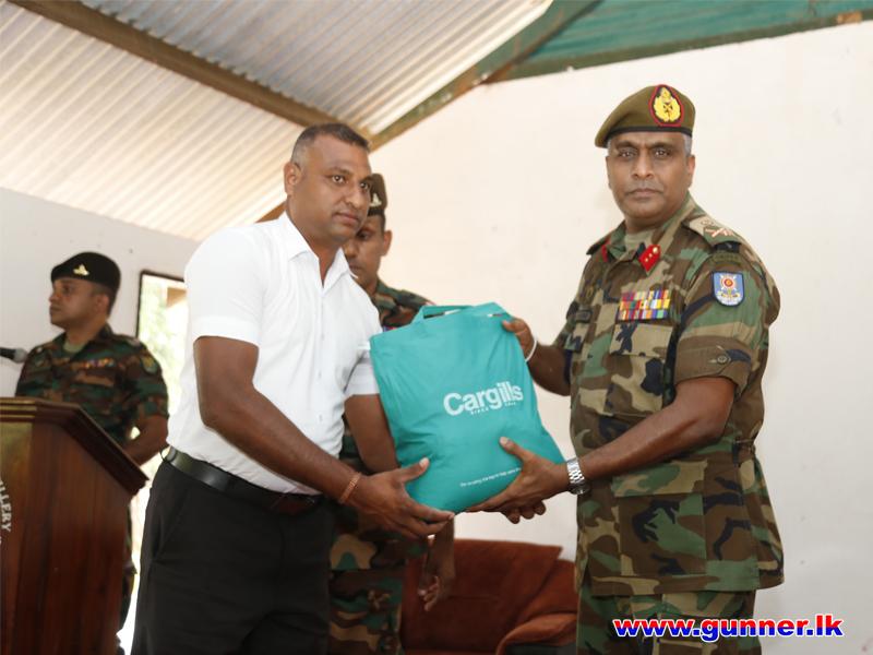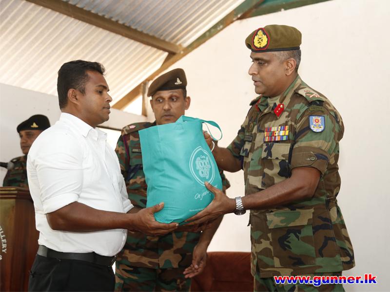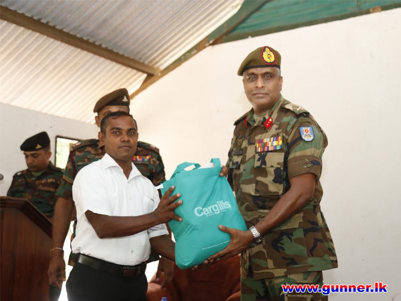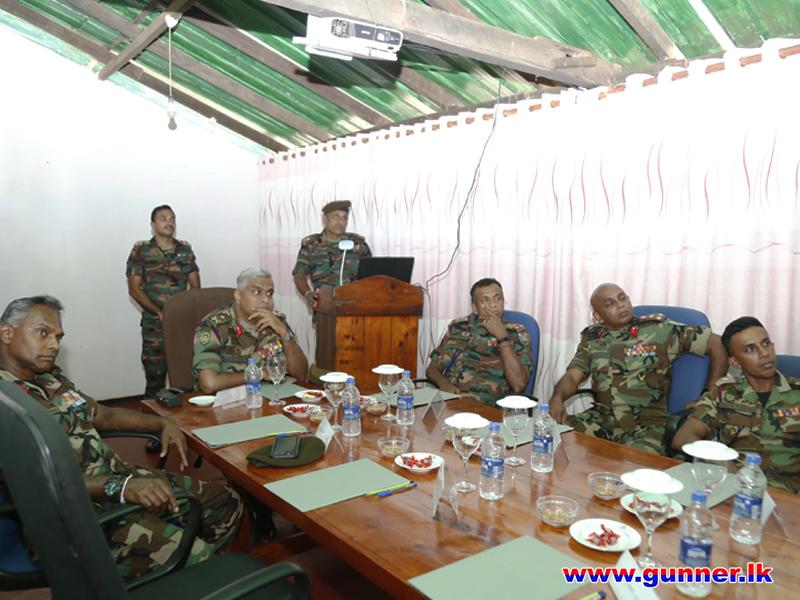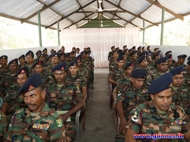 The Colonel Commandant was accorded with a Drive Pass at the main entrance of 12 (V) SLA and welcomed by the Commanding Officer, Major AAS Amarathunga SLA. At the outset Colonel Commandant planted a sapling to mark his visit and took a Group Photograph. Then, the Commanding Officer briefed the present deployment, Role and Task. Afterwards, the Colonel Commandant addressed the troops and also distributed dry ration packs to unit civil servants. The day's programme was concluded with a lunch at the Officers' Mess.