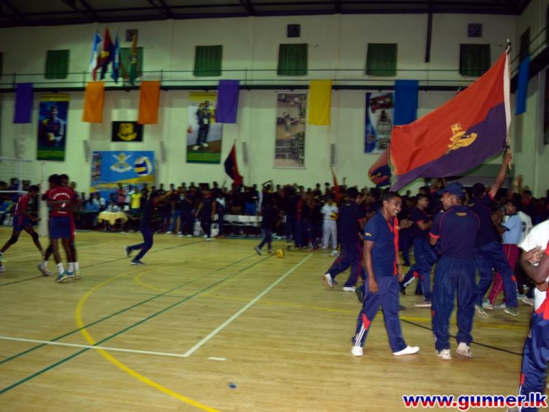 2015-08-10In the Army A division Volleyball Championship, Regiment of Artillery team beat Sri Lanka National Guard team by 3-1 sets (Score 27-25, 25-22, 24-25, 25-22) at the finals. The match was held at the indoor stadium, Sri Lanka Sinha Regiment, Ambepussa on 10th August 2015.