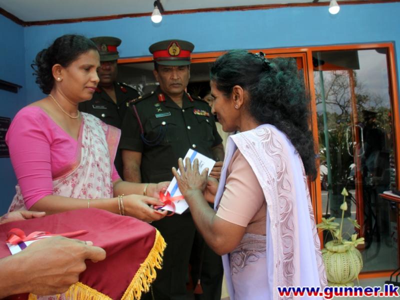 2015-12-18Artillery Seva Vanitha Branch inaugurated a Stationery Shop beside the Habarakada main entrance with the view to raise funds to uplift welfare of the Artillery soldiers. The facility is available for soldiers in the cantonment and the general public in the area too.