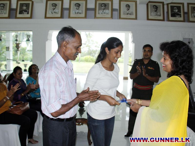 A scholarship worth of Rs 30,000.00 has been given by the chairperson to the daughter of S/55229 Sgt Ranasinghe HS (Rtd) who has requested assistance through the Commanding Officer 6 SLA for his daughter's educational needs who is studying at Faculty of Arts in University of Colombo.
