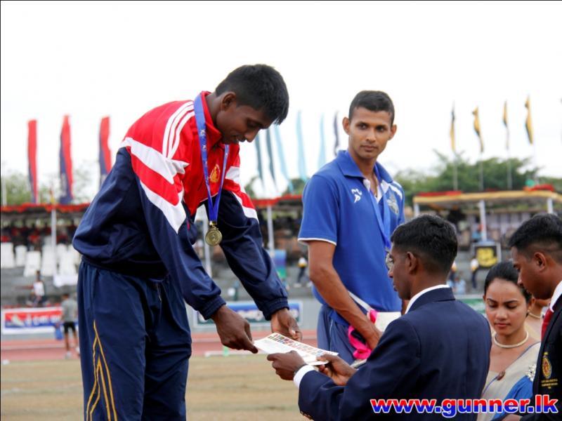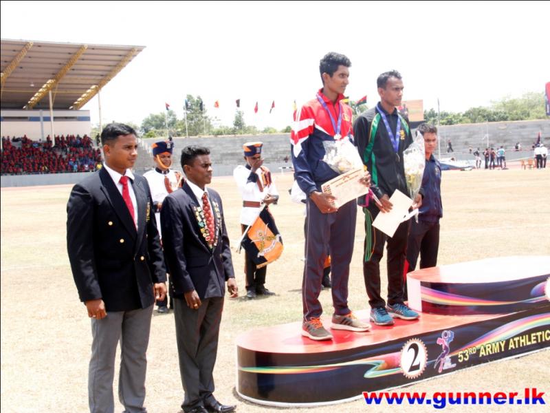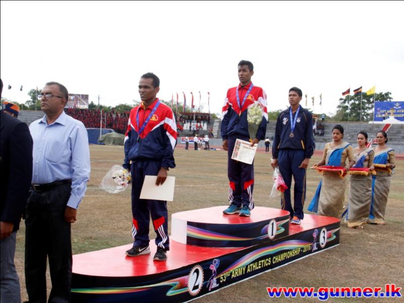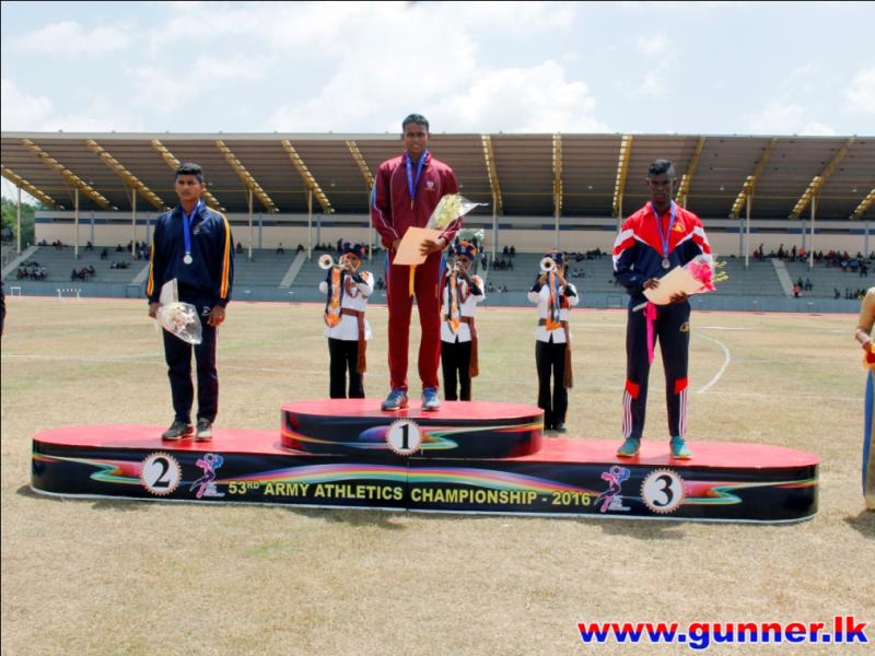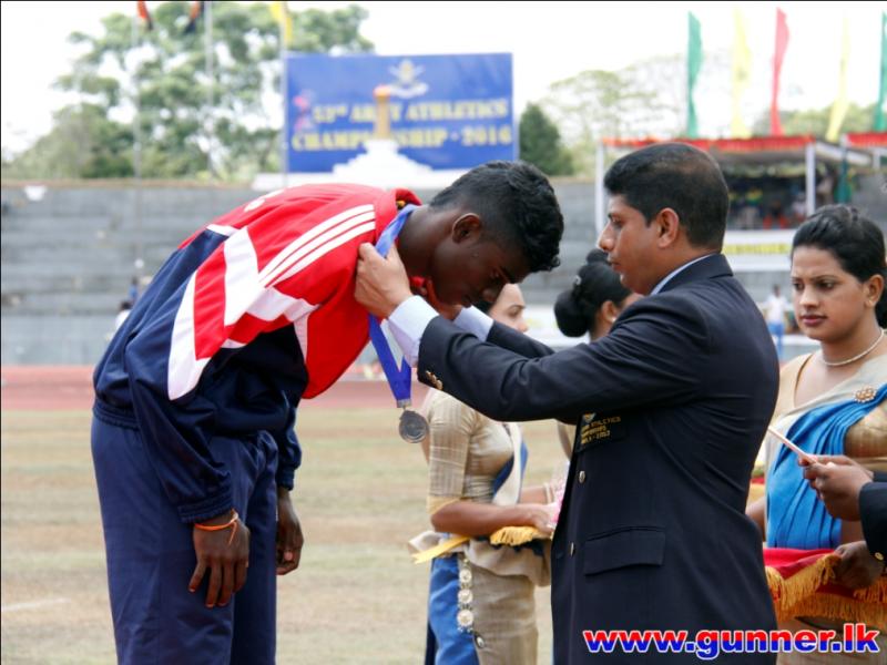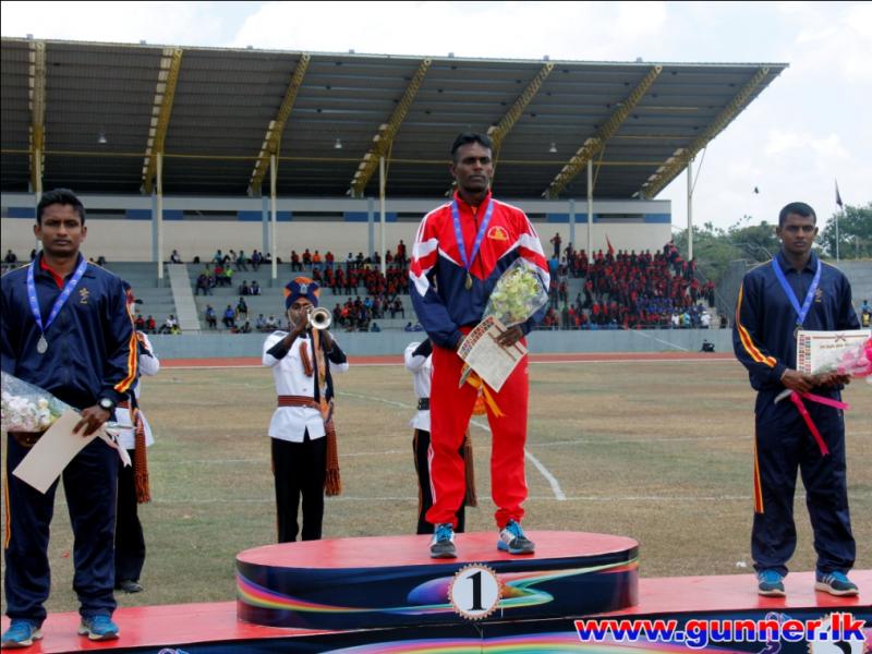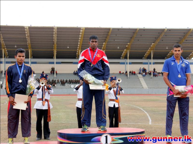 2016-09-24Bombardier Jayasinghe IDSS of Sri Lanka Artillery established a new meet record with a jump of 16.30 meters in men's Triple Jump event on the second day of 53rd Army Athletic Championship - 2016 conducted at the Mahinda Rajapaksa Stadium, Diyagama, Homagama.