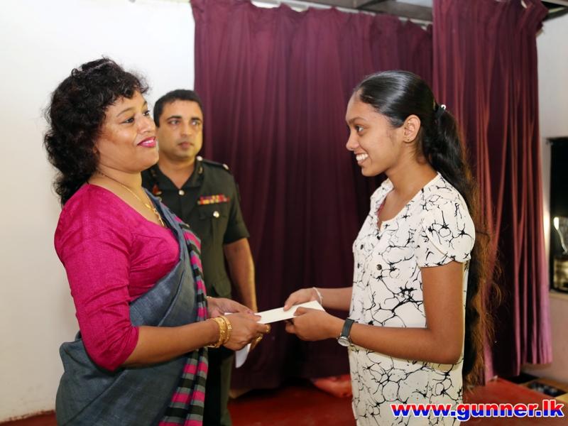 2017-06-08Artillery Seva Vanitha Branch has awardeda scholarship worth of Rs: 25,000.00 to Miss R A HashiniTharushika who is the daughter of S/54569 Gnr David R A D 6 SLA (Rtd), in view of assisting for her higher education (university) needs. Event was held on the 8 June 2017 at the 4 SLA auditorium Panagoda in concurrence with flood relief programme.