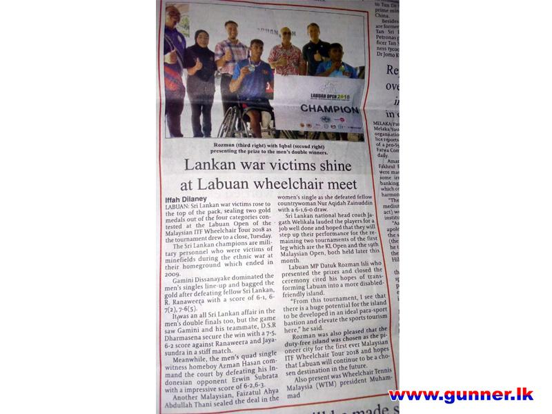 2018-08-21Lance Bombardier Dharmasena DSR became men's doubles Champion in the Malaysian ITF Wheelchair Tennis Championship 'Labuan Open - 2018' organized by the Wheelchair Tennis Malaysia (WTM) in collaborations with Ministry of Youth and Sports Malaysia and Malaysian Paralympics Council hosted the ITF UNIQLO, on 21 August.