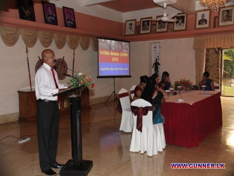 2012-03-26Annual General meeting of the Artillery Seva Vanitha Branch was held at 1630 hrs on 25 March 2012 at the Officers Mess SLA ‘A’ Panagoda with the attendance of members and Colonel Commandant of the Regiment of Artillery. Following members were elected as office bearers for the year 2012/2013. President - Mrs Champika Rambukpotha Vice Presidents - Mrs Thanuja Dias - Mrs Ludmila De Silva Secretary - Mrs Thalatha Wijewardane Treasurer - Mrs Anushi Perera Executive Committee Members - Mrs. Anoma Wanniarachchi - Mrs. Asanka Hewawitharana - Mrs. Krishani Dissanayake - Mrs. Shanthi Abeysekera - Mrs. Nadeesha Bakmeewewa - Mrs. P C Subasinghe - Mrs. Soumya Manohari Ranasinghe - Mrs. Thusari Senavirathne - Mrs. N A R D Nagahawattha - Mrs. Sawetha Hemamali - Mrs. Gimhani Jayalath - Mrs. Maduwanthi Karunarathne - Mrs. Indika Pilapitiya - Mrs. Thushari Dissanayaka - Mrs. Wimala Dissanayake - Mrs. J P Shiromi Samarakoon