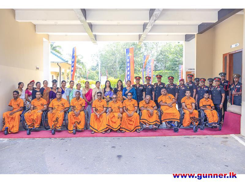 2025-07-13The Sri Lanka Artillery Seva Vanitha Branch organized a special event at Abhimansala-2, Kamburupitiya, with the aim of uplifting the mental and physical well being of war heroes who are currently undergoing rehabilitation. The event was graced by Maj Gen KVNP Premaratne RSP USP nps psc, Commandant - Sri Lanka Army Volunteer Force, and the Colonel Commandant of the Regiment of Sri Lanka Artillery, along with Mrs. Vindya Premaratne, President of the Sri Lanka Artillery Seva Vanitha Branch, as the Chief Guests. Senior officers, officers, and members of the Seva Vanitha Branch also took part in this meaningful occasion. The programme included the donation of essential items for the inmates and caretakers, a sound system for recreational purposes, an entertainment session, and a fellowship lunch shared with the residents. It was a heartfelt initiative to honour and appreciate the courage and sacrifice of our beloved war heroes.